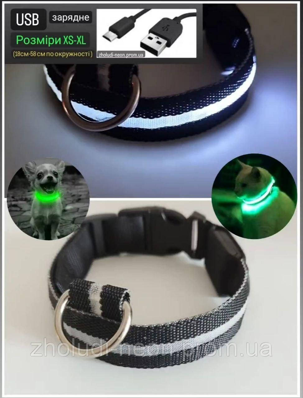 Яркий светящийся ошейник для собак и кошек. Как для мелких так и крупных хвостатых особей